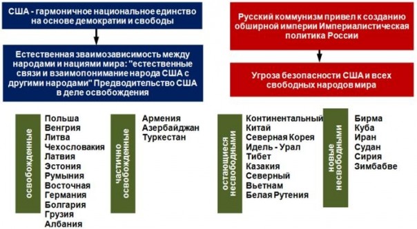 Так как, начиная с 1918 года, империалистическая политика русского коммунизма привела к созданию обширной империи, которая представляет собою зловещую угрозу безопасности Соединенных Штатов и всех свободных народов мира, и