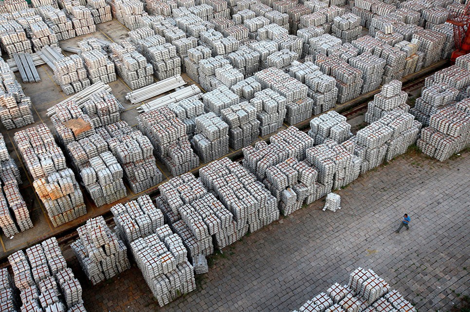 Склад алюминиевых слитков компании "РусАл" в Китае