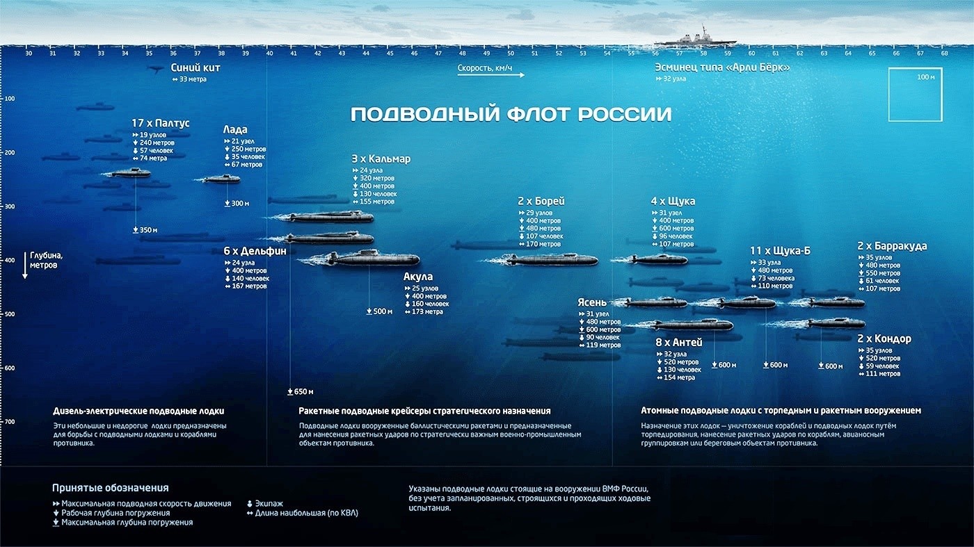 Сравнение подводных сил России и США