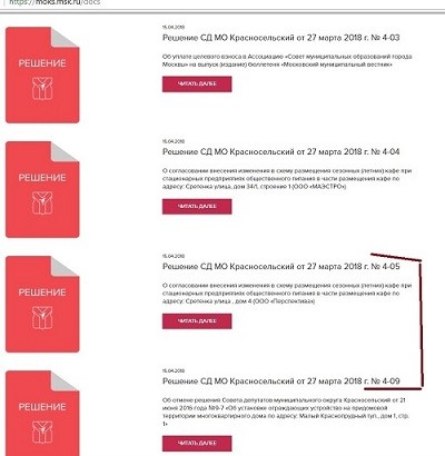 Отметим, что когда всплыла эта премиальная история, Яшин тут же стал заметать следы и убрал с сайта Красносельского района документ №4-08 о премировании себя любимого. На скане обратите внимание на зияющий пробел между решениями № 4-05 и №4-09.