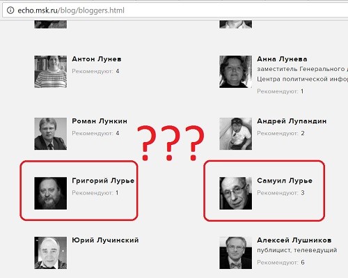 Во-первых, произошло чудо. Ранее я находился в списке автором «Эха», между однофамильцами Григорием Лурье и Самуилом Лурье. А потом как-то по-тихому я куда-то исчез, а в «списке авторов» остались лишь Григорий и Самуил. Им, наверное, теперь грустно без меня. Ну, это, наверное, случайность?