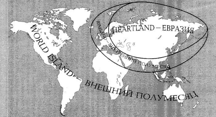 Геополитическая модель мира. Если ряд государств Евразии могут ещё выбирать, к какому миру они хотят примкнуть, то для России альтернативы не существует. Она находится в самом центре Хартленда
