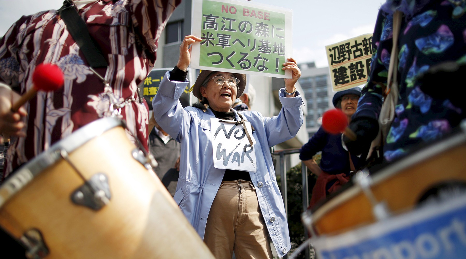 Протесты жителей Японии против базы США в Окинаве