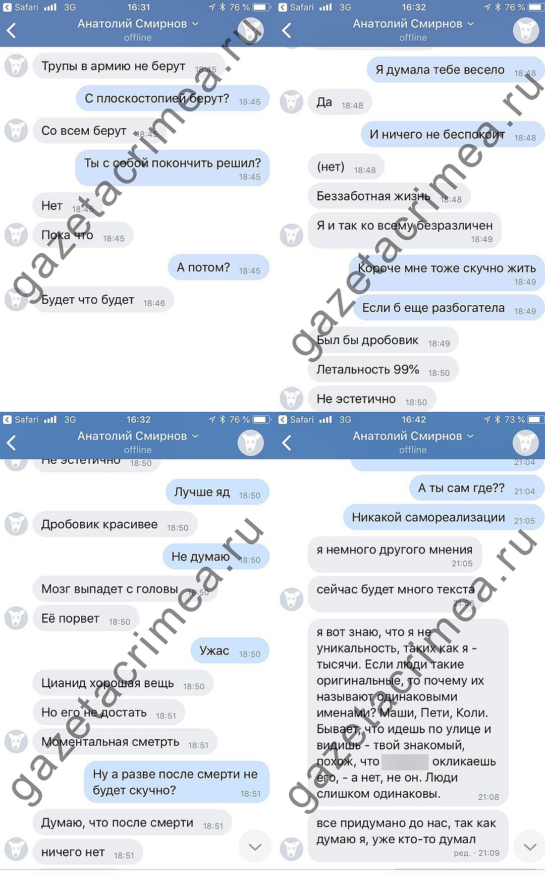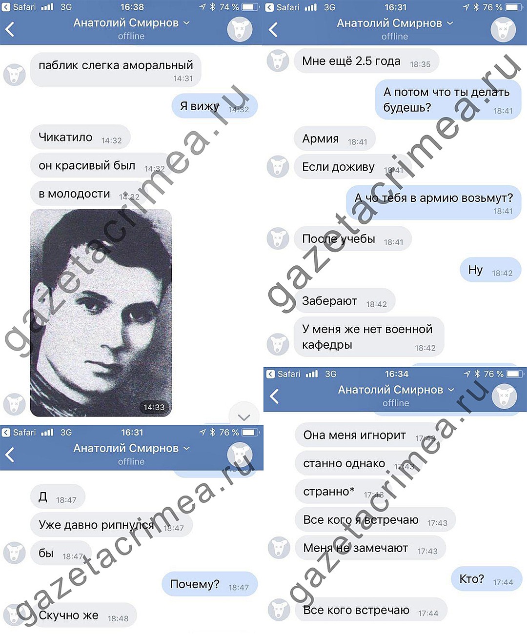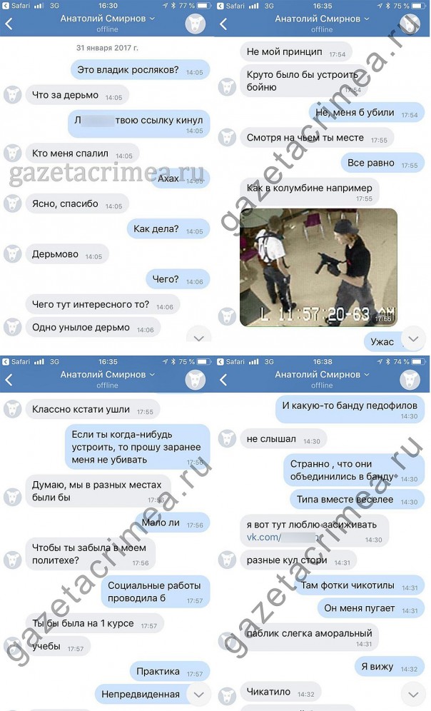 Переписка Рослякова с его бывшей одноклассницей, с достаточно характерными пассажами еще за полтора года до финала.