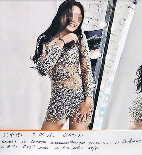 «31.10.18. время 06.35. Данных за острую гинекологическую патологию не выявлено. 29.10.18 в 23.00 износ (так на профессиональном жаргоне зовут изнасилование) на Октябрьской революции, 49/1» - это адрес отдела миграции.