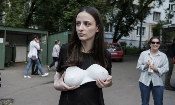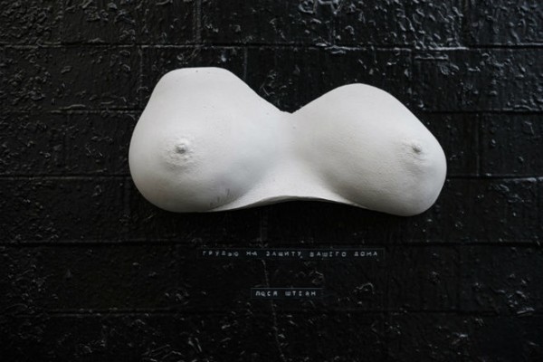 Люся Штейн, сделала слепки-"обереги" своей груди и установила их на шести домах, которые приговорили к сносу. Типа, грудью встала на их защиту