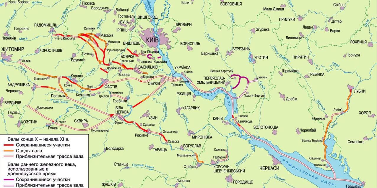 Справка. Советский археолог Павел Александрович Раппопорт, изучавший древнерусские городища Поднепровья, не нашёл их связи с валами.
