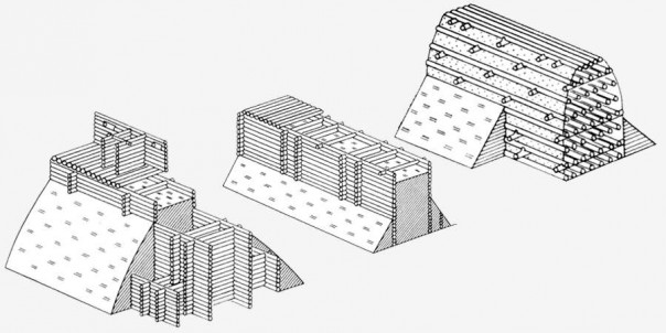 Выяснилось, что валы валам рознь. Были определены три основные их конструкции — срубная, перекладная, а также без деревянного каркаса. В первом случае использовались деревянные клети, засыпанные землёй. Этот способ типичен для строительства укреплений русских городов. Перекладная конструкция, когда чередуются ярусы продольных и поперечных брёвен, в Среднем Поднепровье была не в моде. Эта технология характерна для поляков и полабских славян.
