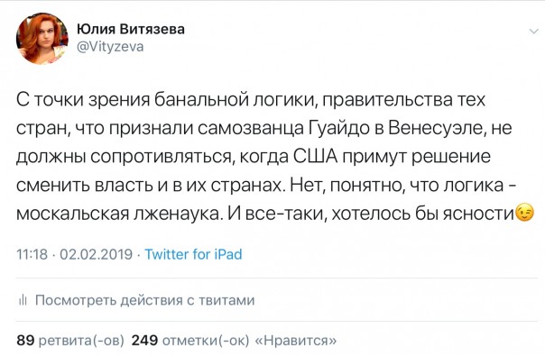 Юлия Витязева: Пора восстать против американского лжепророка