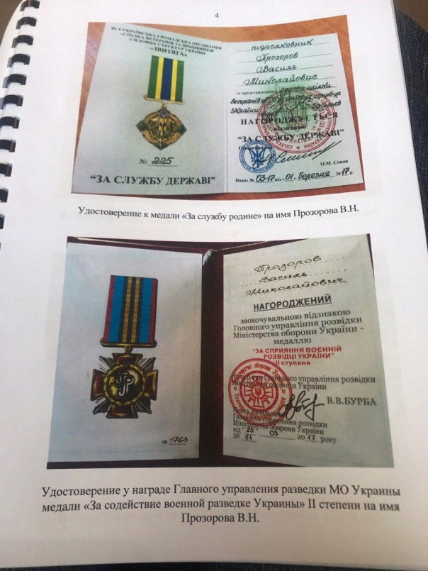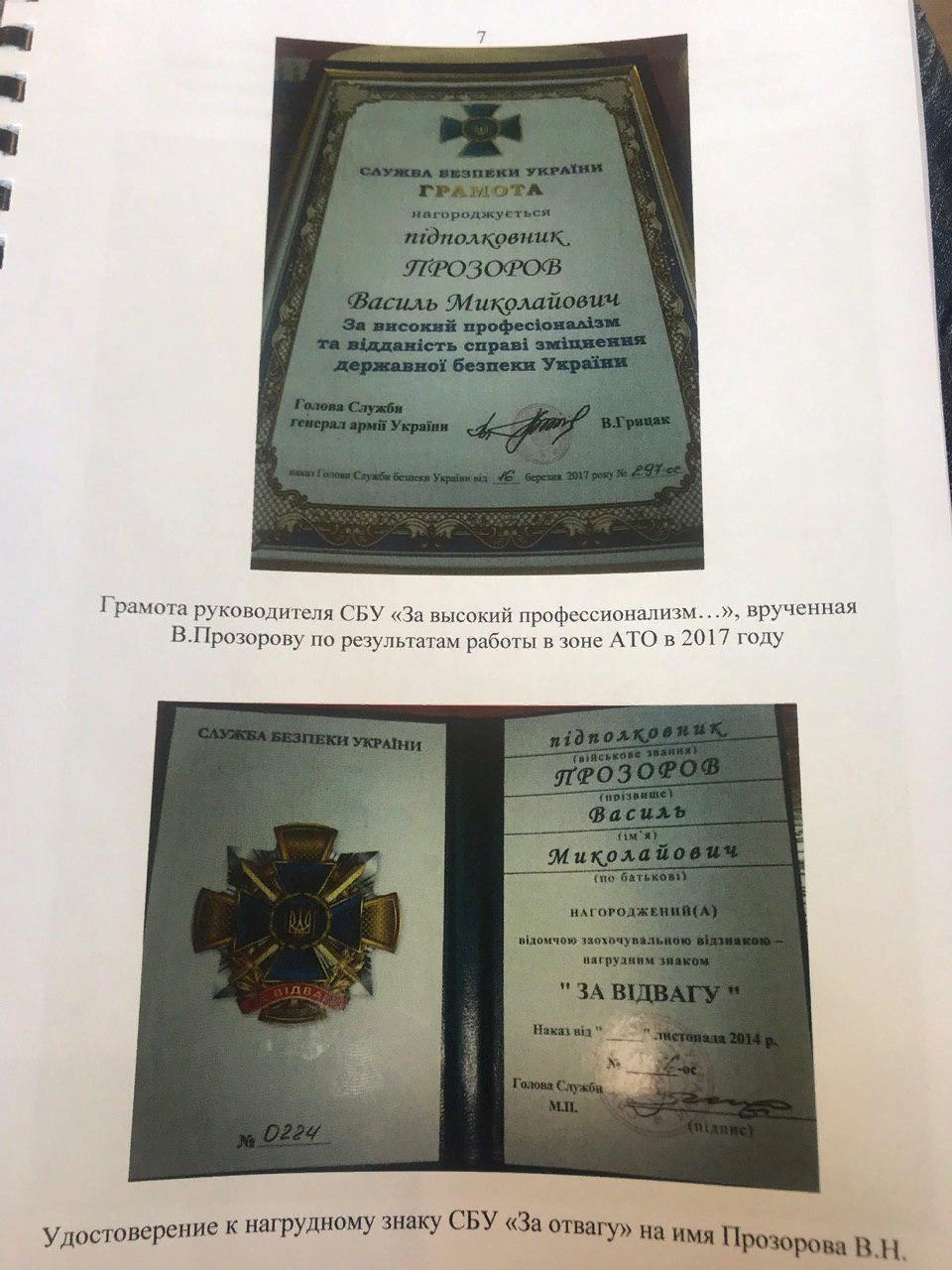 Грамоты и награды Прозорова скорее свидетельствуют о том, что он был на хорошем счету у начальства, которому подложил жирную свинью или в свете новых тенденций "подложил Свинарчука".