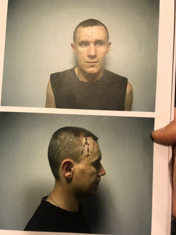 Пытались крюком зацепить меня за ребро и подвесить. Потом пристегнули к решетке на полу, били ногами, палкой, надевали пакет на голову, били палкой по ступням, по почкам. Пугали пистолетом и били по затылку. Обливали холодной водой, чтобы не терял сознание. На четвертый день меня повезли в Полтавское СБУ. Там прошел медосмотр и флюорографию, где мои побои записали как оказание сопротивления при аресте, хотя я сопротивления не оказывал.