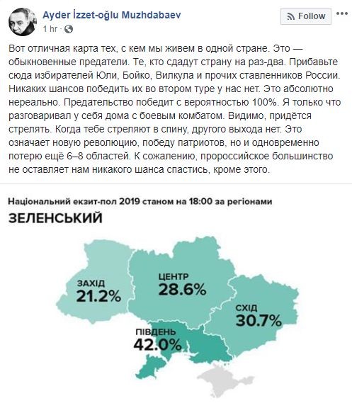 Фарион требует посадить русскоязычного Зеленского и «начать серьёзную войну против 30% избирателей Украины», бандеровщина выражает поддержку Петру, его ближайшее окружение бряцает оружием и обещает «задавить и придушить».