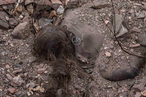 В воронке от снаряда обнаружены четыре человеческих тела, судя по одежде – это гражданские. Среди погибших три женщины, одна из которых беременна.