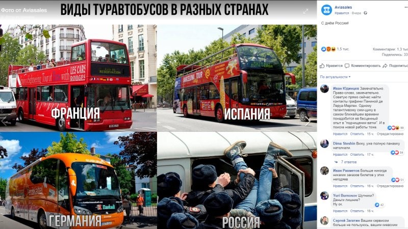 Известный российский агрегатор авиаперевозок опубликовал на днях в соцсети пост, посвященный туристическим автобусам в разных странах. От России в этой фотогалерее — полицейский автозак, в который "пакуют" протестующих. Многие возмутились неудачной шутке и призвали бойкотировать компанию, а саму публикацию обвинили в "русофобии". Подобные промахи не редкость и для мировых корпораций. Рекламщикам все чаще приходится извиняться за сомнительные креативные решения.