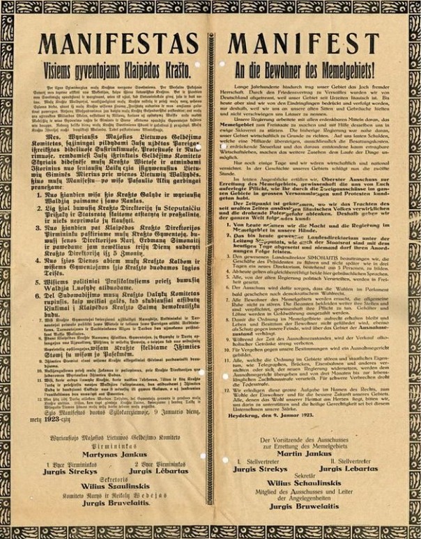 В конце декабря 1922 года литовская делегация образовала в Мемеле особый «Комитет по вызволению Малой Литвы», который ставил перед собой задачи утверждения над Клайпедским краем литовской юрисдикции. Польша, поддерживаемая переменчивой Францией, начала готовиться к войне. На тот момент поляки уже владели Виленским краем, а временной столицей Литвы был Каунас.