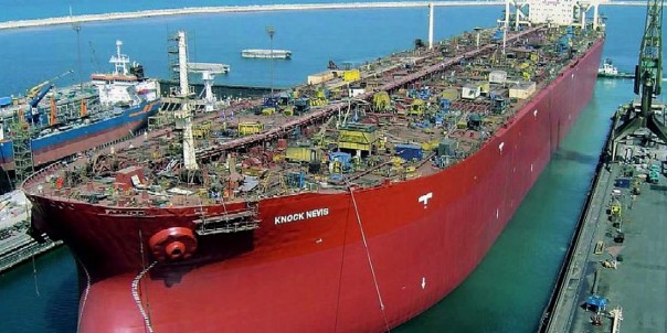Справка. Самым большим танкером в истории считается Knock Nevis, построенный в 1979 году (ранее известный как Seawise Giant, Happy Giant, Jahre Viking, он же Гоша, он же Жора, он же Гога). Его дедвейт составлял 564 000 тонн нефти — это более четырёх миллионов баррелей. Длина этого монстра — 458 метров, что на 120 метров больше американского авианосца USS «Энтерпрайз».