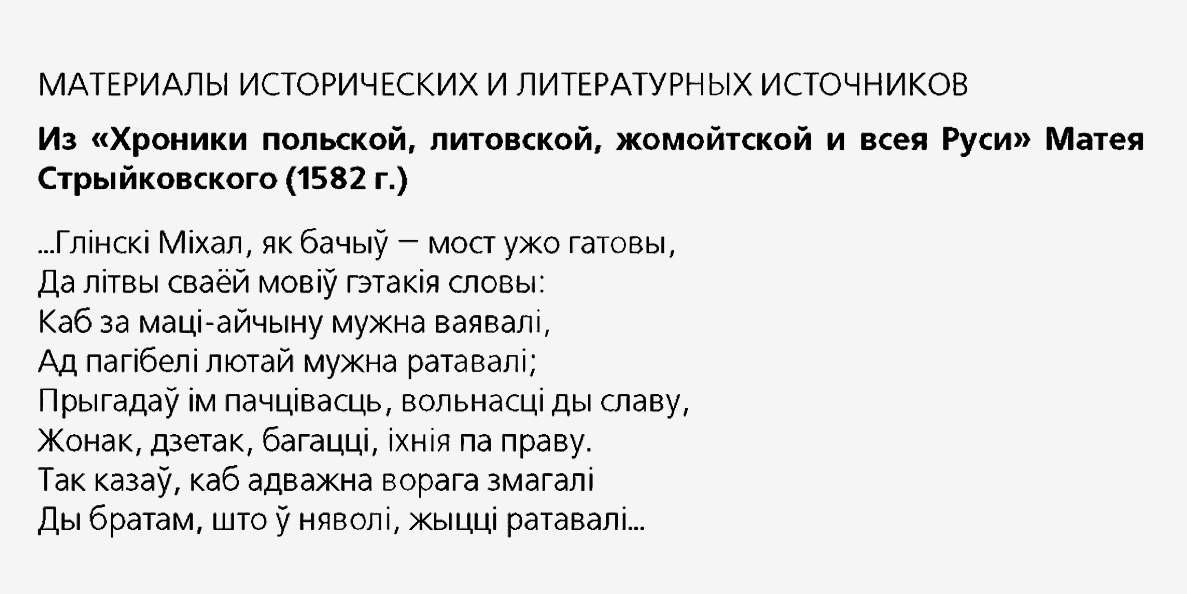 В школьных учебниках для 7-8 классов во врезках часто даются стихи либо фрагменты текстов, датированных XVI–XVII веками. Но написаны они на современном белорусском языке, созданном в XX веке. И то, что это перевод, не указывается.