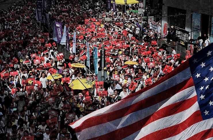Стоит ли упоминать тот факт, что в разгар протестов Вашингтон попросил Пекин разрешить нескольким военным кораблям ВМС США причалить к берегу бастующего острова, как если бы подобное было само собой разумеющейся практикой!