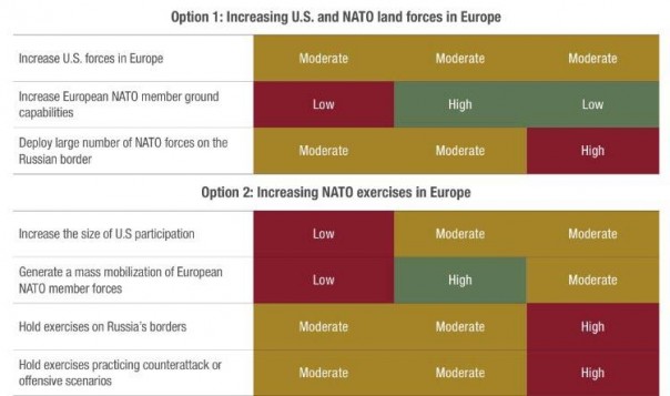 3) Аналитика американских think-tank’ов. Не так давно был опубликован очередной доклад влиятельного аналитического центра – RAND corporation под названием «Overextending and unbalancing Russia». Что можно перевести как «Перенапряжение и дестабилизация России». В этом докладе можно обнаружить следующие таблицы, в которых напрямую оценивается выгодность проведения определенной политики в евразийском регионе.