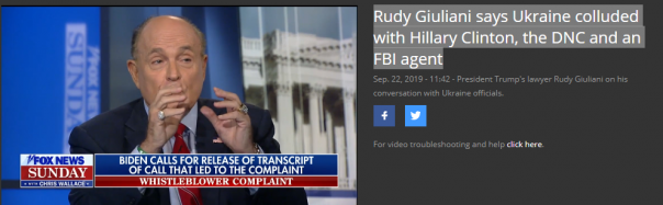 Помимо серии твиттов об Украине, в интервью ФоксНьюз Руди Джулиани также рассказал, что Украина вступила в сговор с Хиллари Клинтон, демократической партией и с ФБР.