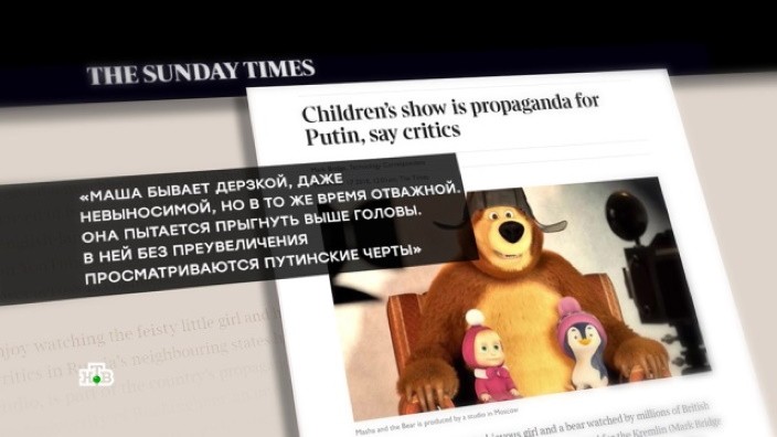 А недавно, когда сериал только начал появляться на западных экранах, британская «Таймс» обозвала его «кремлёвской пропагандой». «Британский профессор Энтони Глис, – писала «Таймс», – увидел в главной героине мультипликационного сериала «Маша и Медведь» Маше отражение президента России Владимира Путина. Маша – напористая, даже неприятная, но в то же время она решительная. Она прыгает выше головы», – процитировала «Таймс» слова профессора Букингемского университета Энтони Глиса.