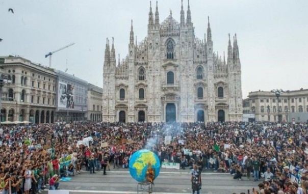 В Милане центр города заполнили около 300 тысяч человек. На центральной площади Дуомо толпа молодых людей под крики и улюлюканье сожгла огромный макет земного шара, хором скандируя: «Спасти планету!», «Наш дом в огне!», «Действовать быстро!». В Турине к демонстрантам присоединился мэр города Стефано Мизерокки, который заявил об угрозе схода с Монблана огромного ледника...