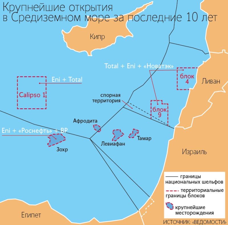 Французская «Тоталь» и итальянская ЭНИ уже ведут разведочное бурение на лицензионном Блоке 11 у берегов Кипра; с декабря 2016-го итальянцы и французы совместно работают на Блоке 6. «Открытие невероятных богатств трансформирует Восточное Средиземноморье в геополитическую горячую точку, и столкновения кажутся неизбежными…» – пишет саудовское издание Arab News.