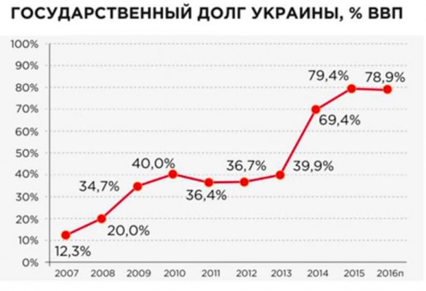 Растет и долг. Поколению гаджетов и кружевных трусиков проще воспринимать картинки, потому просто покажу. Это динамика роста долгов Украины после обильного выделения гидности.