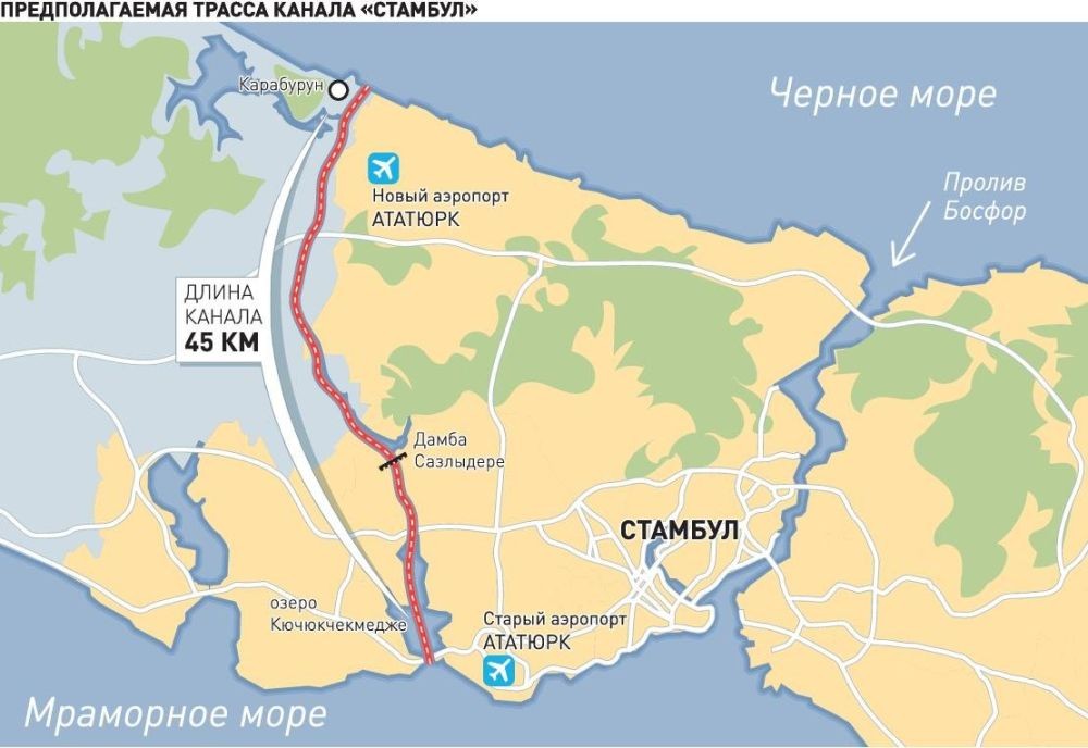 Как объявил Эрдоган, запланированный 43-километровый «Канал Стамбул» стоимостью 10 миллиардов долларов будет готов к 2025 году. После этого пролив Босфор будет использоваться только сухогрузными судами. Другие суда, в том числе танкеры и военные корабли, будут использовать новый «Канал Стамбул», не связанный условиями конвенции Монтрё.