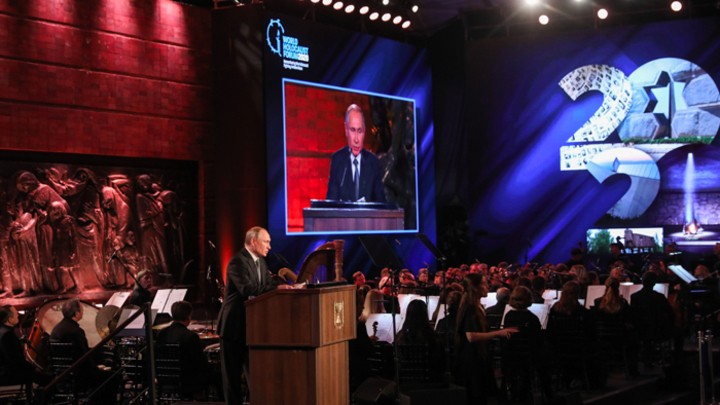 Зеленский, президент Украины, где евреев в годы войны уничтожали при оккупации так же безжалостно, как и в Прибалтике и тоже во многом руками местных карателей, приехал, но лучше бы этого и не делал. Он в последний момент отказался от участия во Всемирном форуме "Сохраним память о Холокосте, боремся с антисемитизмом". Вся украинская делегация во главе с Зеленским сдала свои билеты на него, так как их, дескать, не хватило для всех желающих.