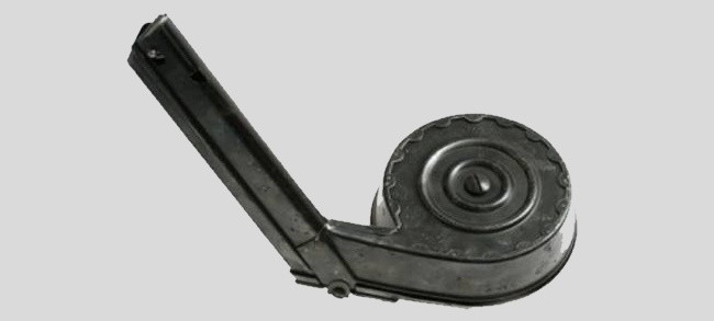 Скорострельность была очень большая – 1000 выстрелов в минуту. А вот о емкости магазина разные источники пишут по-разному, можно найти и 22 патрона, и 44. Для дискового магазина, конечно, мало, тем более при такой скорострельности.