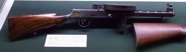 Первое, что пришло на ум «дзеновцу», это сравнить описанный «марсианский автомат» с пистолетом-пулеметом Дегтярева, созданный тем в 1929 году. Он имел перфорированный кожух ствола, ручку для удобства удержания снизу и дисковой магазин, крепившийся сверху на ствольной коробке. Ствольная коробка была аналогична коробке пулемета ДП. Рукоятка затвора с классическим шариком на конце (просверленным для облегчения) находилась справа.