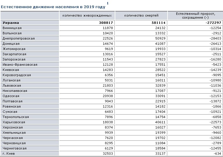 В 2019 году на Украине зарегистрирована самая низкая рождаемость. Она почти в 2 раза меньше смертности. А если не считать условно благополучный Киев, то в регионах, судя по цифрам статистики, сейчас Голодомор.