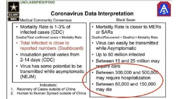 Североамериканское командование армии США прогнозирует от 80 000 до 150 000 смертей в США.