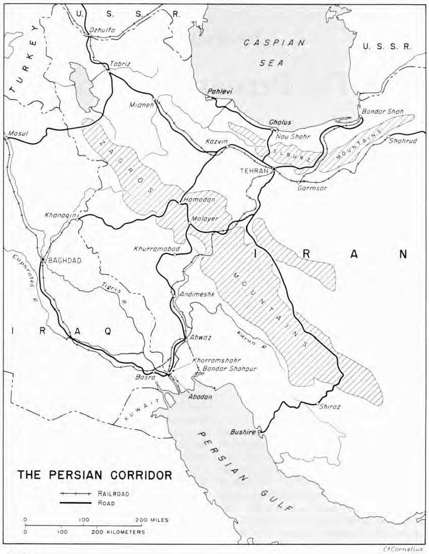 Присутствие советских и британских войск в Иране в последующие пять лет позволило взять под контроль, а затем расширить пропускные возможности Трансиранского маршрута, по которому Советский Союз за годы войны получил от союзников более 23% военных грузов (по тоннажу). По маршруту шло в основном морское оборудование и автомобили. Только для нужд Красного флота было доставлено свыше 40 тысяч тонн грузов, среди них автоматические зенитные пушки, пулемёты, зенитные автоматы… Была необходимость и проведения масштабной модернизации транспортной системы Ирана. В сжатые сроки были построены Трансиранское шоссе, железная дорога и два порта в Персидском заливе. В американской прессе этот маршрут получил название «Персидский коридор».