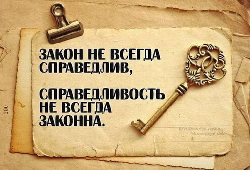 Наш менталитет никогда не связывал вину и справедливость с каким-либо юридическим актом. Мы точно знаем, что можно быть без вины виноватым, а справедливость совсем не обязательно облекается в юридическую форму. Наоборот - очень часто оно юридическим решениям жёстко противопоставляется.