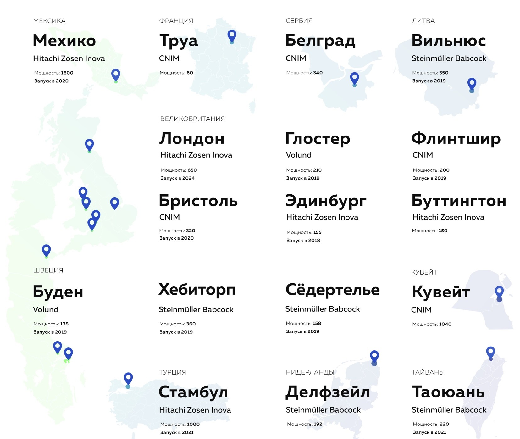 Всего в Европе сейчас строится 30 заводов W2E, мы кстати разбирали это кучу раз. Вот часть планов по ситуации на май 2019 года (надо будет обновить, потому что кризис наверняка внесет коррективы в сроки реализации проектов) ФОТО №3: