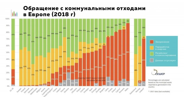 Сначала про сжигание, которое в Европе сведут к нулю. За запрет на МСЗ в Европе семейство Гудковых уже не первый год традиционно выдает коммюнике Еврокомиссии «Роль переработки отходов в энергию в циклической экономике» от 26.01.17, где действительно написано, что необходимо ограничивать сжигание отходов. Однако данное замечание относится только к тем странам, где сжигается уже более 50% всех отходов, а захоронение полностью отсутствует. Для тех стран, где доля захоронения – высокая, указанное Коммюнике рекомендует строить новые объекты, цитата: