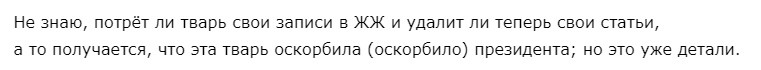 А он исподтишка "тварь", и лишь в комментах "стыдливо" признал, кого имел в виду.