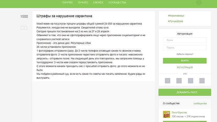 Такие истории сейчас появляются всё чаще. Так, москвичку Елену Сидякову московские власти решили оштрафовать в общей сумме уже на 24 тысячи рублей – за то, что вовремя не сфотографировалась и не сохранила фото в злополучном приложении. Дочь Елены объяснила это тем, что через какое-то время после установки "Социального мониторинга" у матери перестало получаться отправить фото – приложение зависало. И за каждую неотправленную фотографию женщине приходил штраф в 4 тысячи рублей.