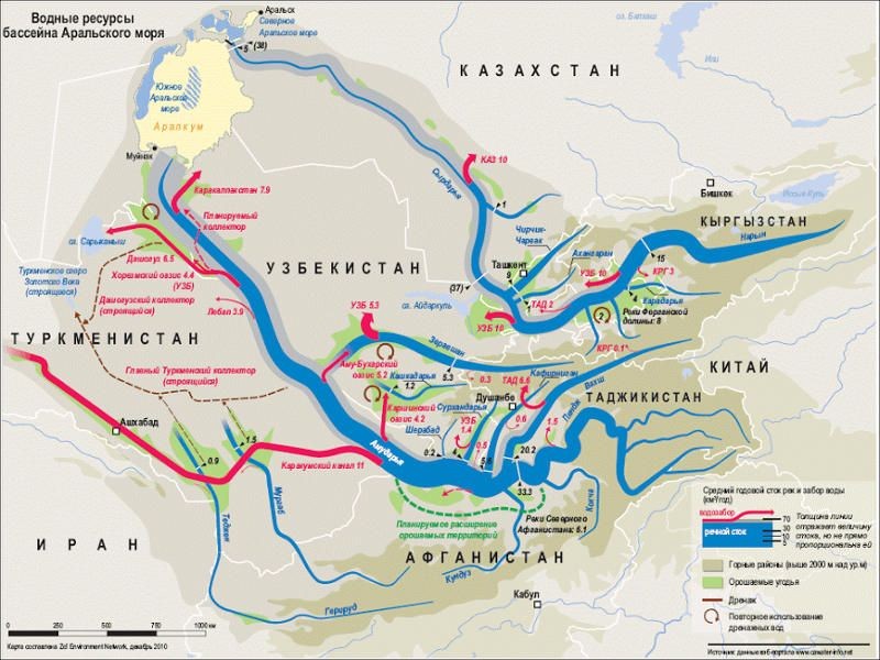 Через десять лет после развала Советского Союза Узбекистан за долги ограничил поставки газа Кыргызстану и Таджикистану, которые были вынуждены в холода запускать турбины Нарынского каскада ГЭС в режим выработки электроэнергии, чтобы обеспечить теплом замерзающие города. По Сырдарье покатились зимние паводки, которые ежегодно затапливают тысячи гектаров сельхозугодий в Узбекистане и на севере Таджикистана, а к концу февраля вызывают сильные наводнения на юге Казахстана.