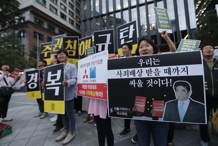 Одним из ответов Сеула стал арест по решению суда активов Mitsubishi Heavy после того, как эта японская компания отказалась выплатить компенсацию за принудительный труд на своих предприятиях в годы войны. Не исключено, что нежелание японского правительства и японских компаний выплачивать компенсации по вновь выдвинутым искам вызовет в Южной Корее новую волну возмущения. Снова могут быть подняты требования принесения извинений и компенсаций корейским женщинам «ианфу» («женщинам для утешения»), которых десятками тысяч отправляли в солдатские бордели на оккупированных Японией территориях. Среди таких жертв японской военщины значительный процент составляли несовершеннолетние.