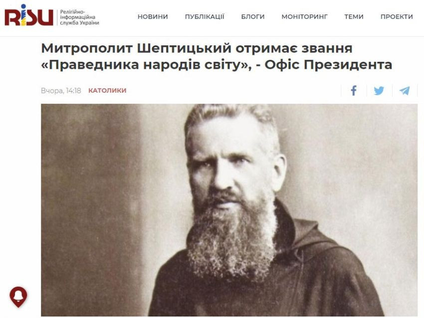 «Митрополит Шептицкий получит звание “Праведника народов мира”» – такой новостью разродилась униатская Религиозная информационная служба. Новость, чего и говорить, сенсационная: ведь из года в год руководство израильского национального мемориала Холокоста «Яд ва-Шем» отказывало кандидатуре Шептицкого в причислении к лику праведников, отметившихся спасением евреев во время Второй мировой войны.
