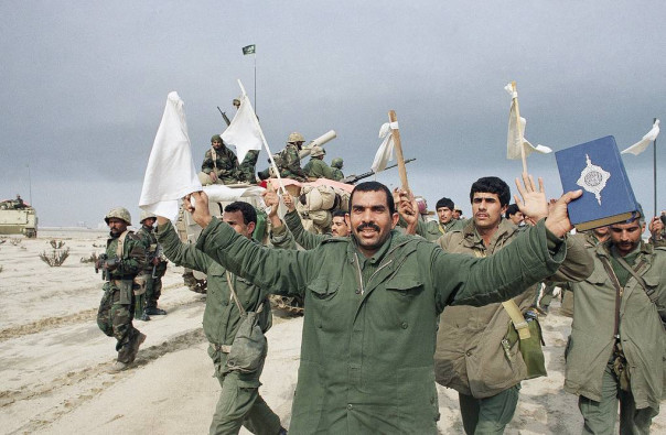 Иракские военные сдаются американским силам в Кувейте, февраль 1991 года