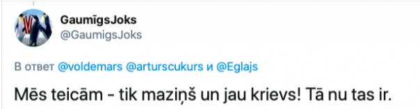 Это крайне трогательно для политика, в чьем государстве имитируются паспорта с более чем конкретно надписью «ALIENS», что полностью отражают реплики комментаторов в исключительно внтурилатышском разговоре на русскую тему.