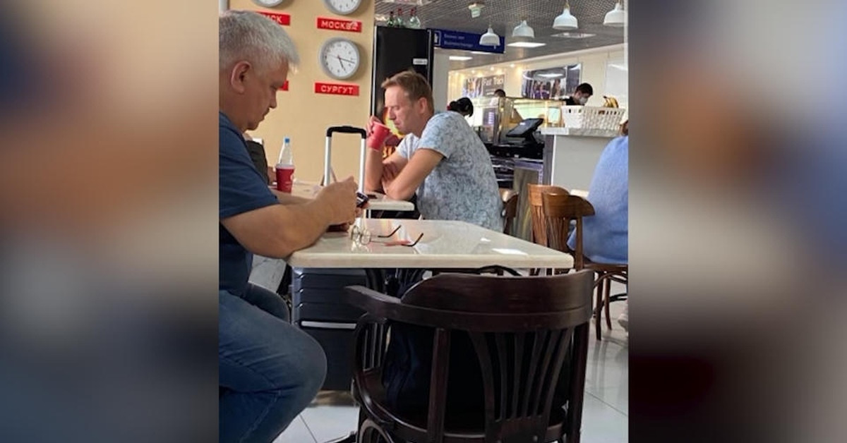Сейчас в СМИ опубликованы записи с двух разных камер наблюдения. На одной зафиксировано, что Навальный пил кофе, принесенный Пахомовым.