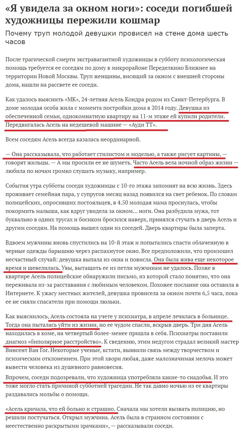 В общем, там была и записка, и одежда, и причёска и видео в Инстаграм и прочее, прочее, прочее… А потом случилось немного реальной жизни. Многие не в курсе, но не всегда получается просто уйти из жизни, иногда надо очень сильно постараться. А вот со старанием и пониманием неких процессов у данного вида граждан, к сожалению не очень.