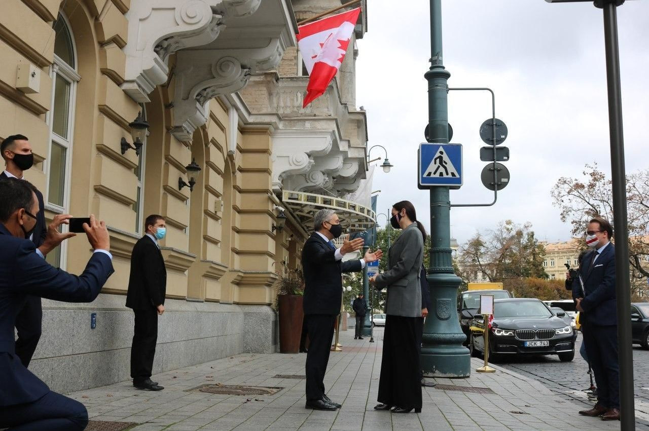 Встреча Тихановской с министром иностранных дел Канады Франсуа-Филиппом Шампанем вообще проходила на улице, фото №2. Так "демократический мир" воспринимает Тихановскую и относится к ней. Того же Зеленского хотя бы в кабинет пускают ненадолго.