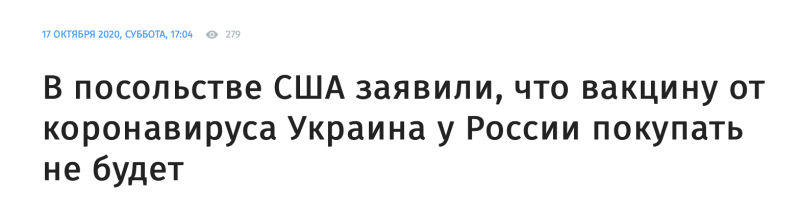 - Об этом говорится в сообщении пресс-службы посольства на странице в социальной сети Facebook, передают Українськi Новини. "Вчера временная поверенная по делам США Кристина Квин пригласила на конструктивный коллегиальный ужин министра (здравоохранения Максима) Степанова, чтобы обсудить борьбу с COVID-19 и реформы сектора здравоохранения. Украина не будет покупать российскую вакцину от COVID, которая не прошла клинических испытаний на безопасность!" - говорится в нем.