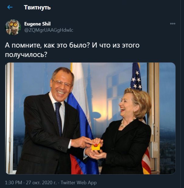 Кнопка с надписью "peregruzka", подаренная Хиллари Клинтон Сергею Лаврову в Женеве, не привела к желаемым успехам: идея "перезагрузки" провалилась и США продолжили санкционное давление на Россию